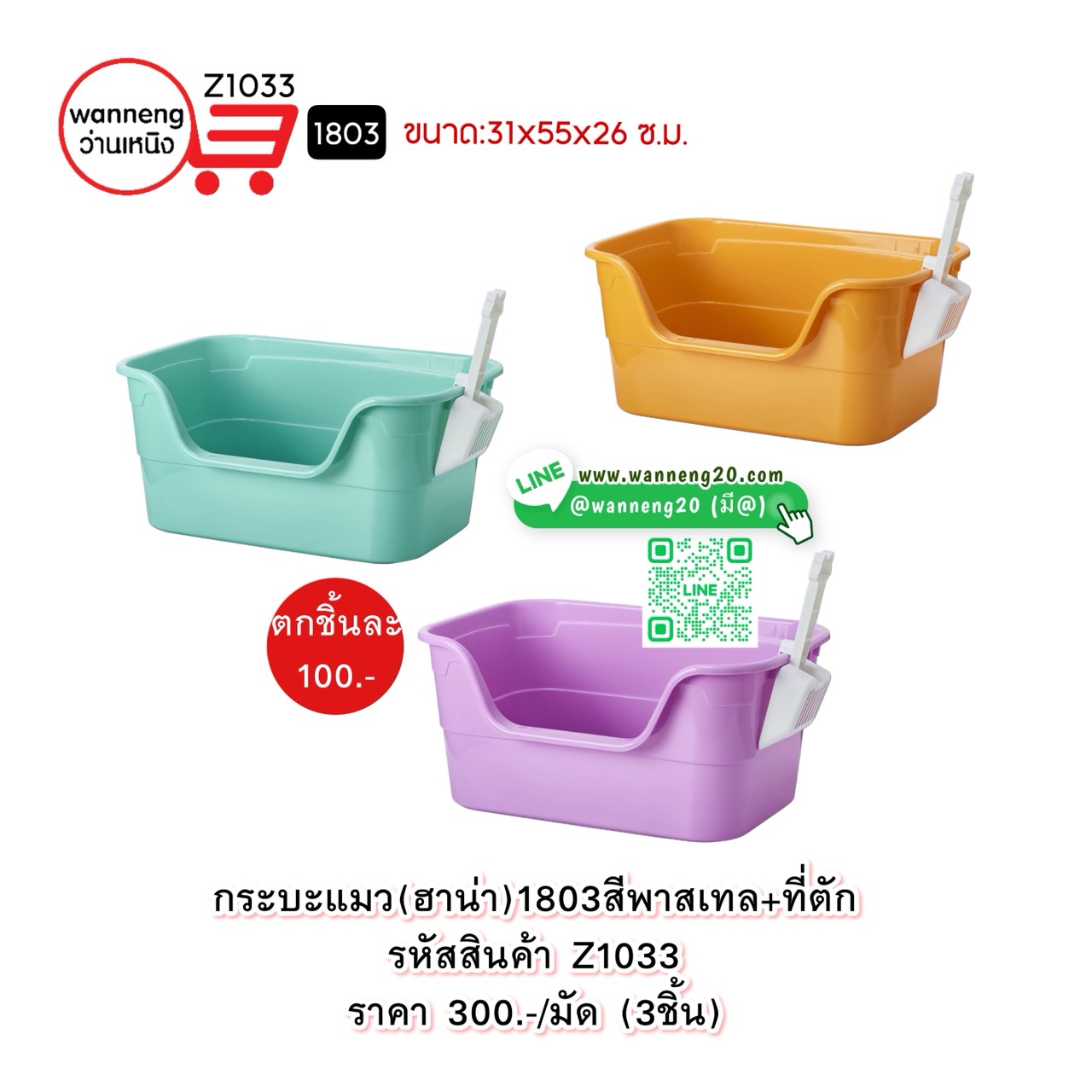 Z1033 กระบะแมว (ฮาน่า) 1803 สีพาสเทล+ที่ตัก 1 มัด 3 ชิ้น