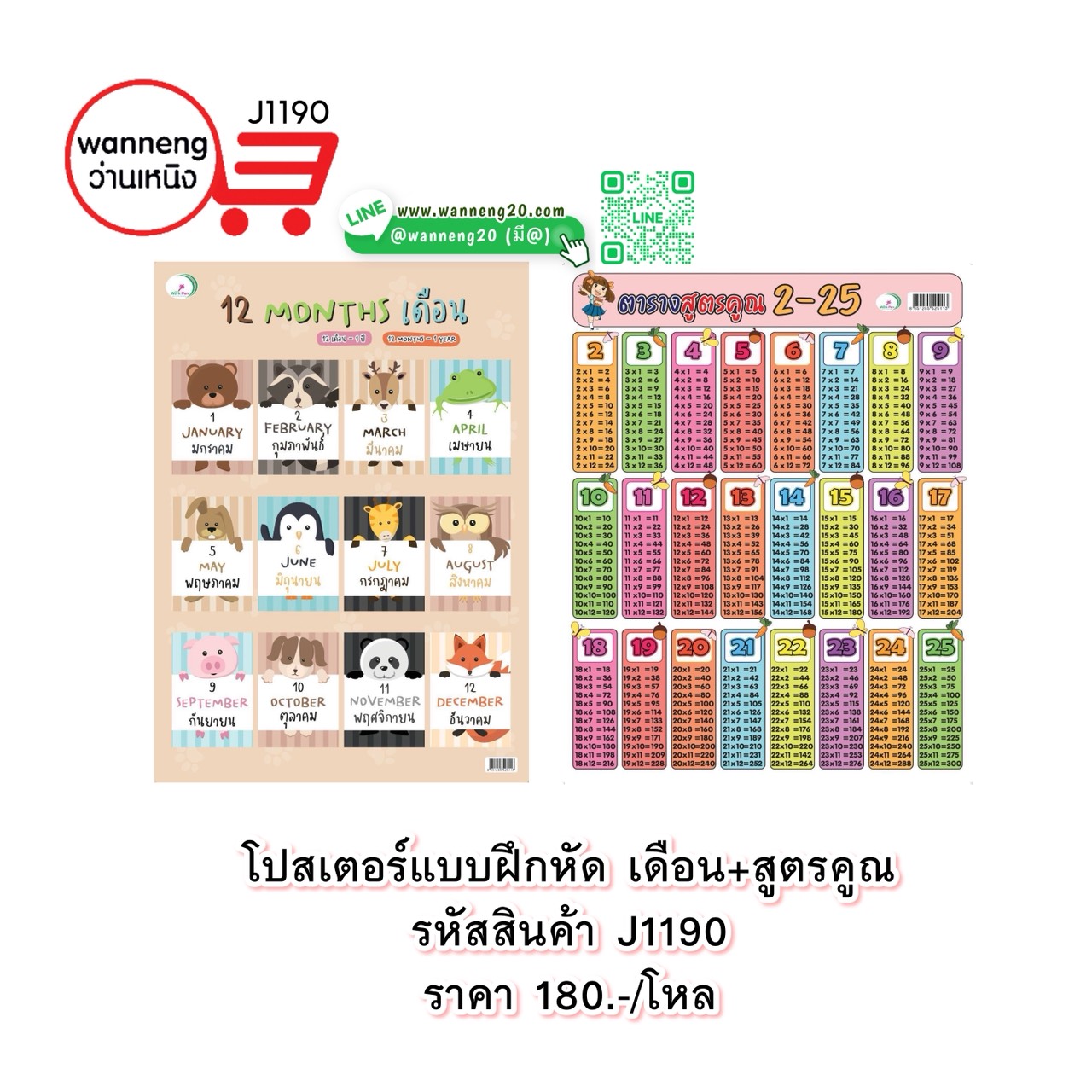 J1190 โปสเตอร์แบบฝึกหัด เดือน+สูตรคูณ แบบที่ 1 1 โหล