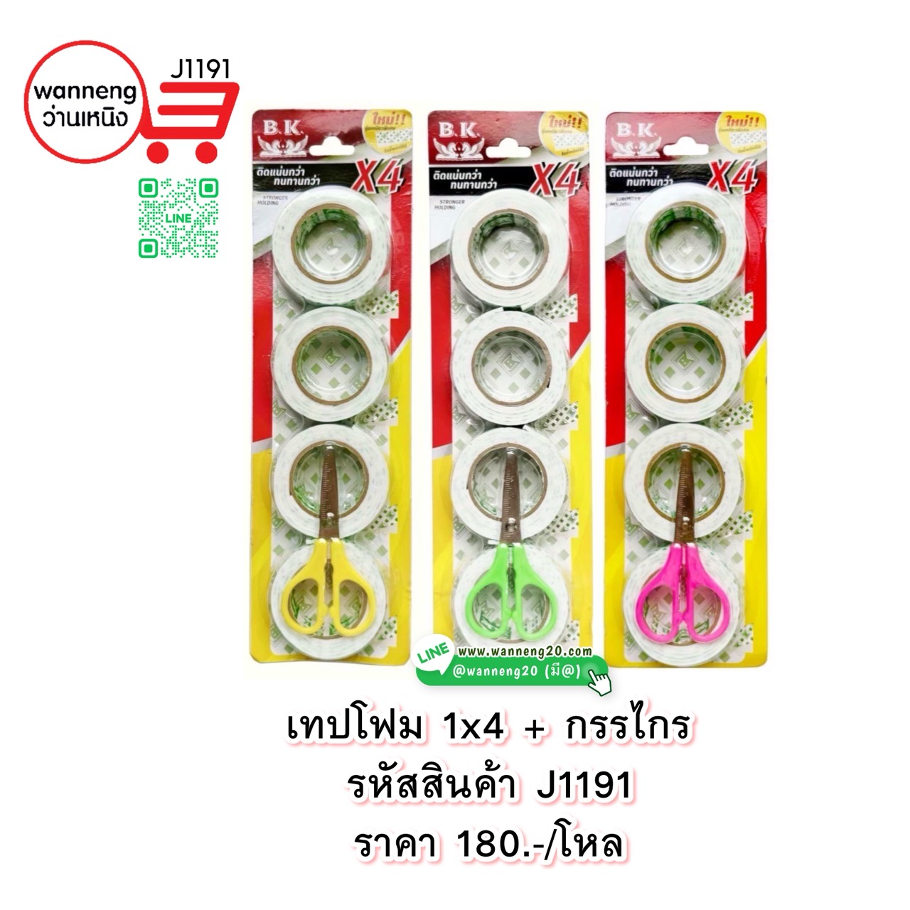 J1191 เทปโฟม 1x4 + กรรไกร 1 โหล