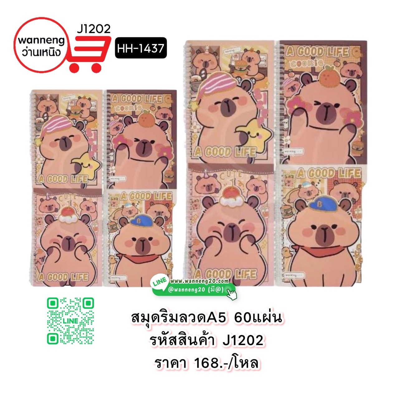 J1202 สมุดริมลวดA5 60แผ่น HH-1437 1 โหล