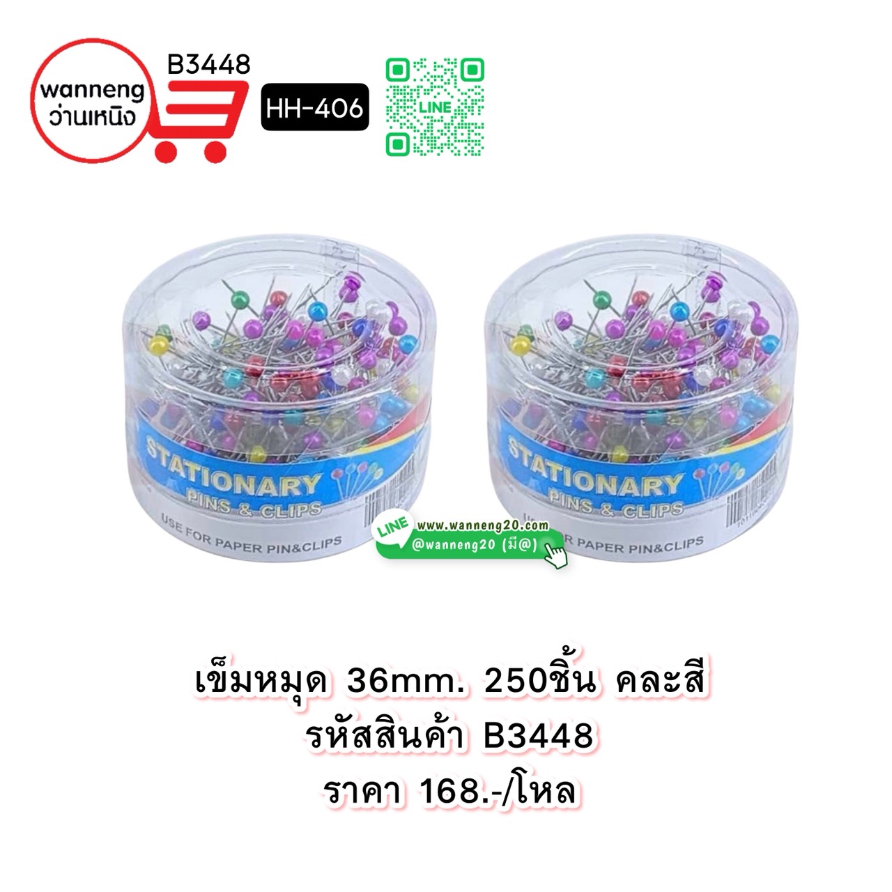 B3448 เข็มหมุด36mm. 250ชิ้น คละสี HH-406 1 โหล