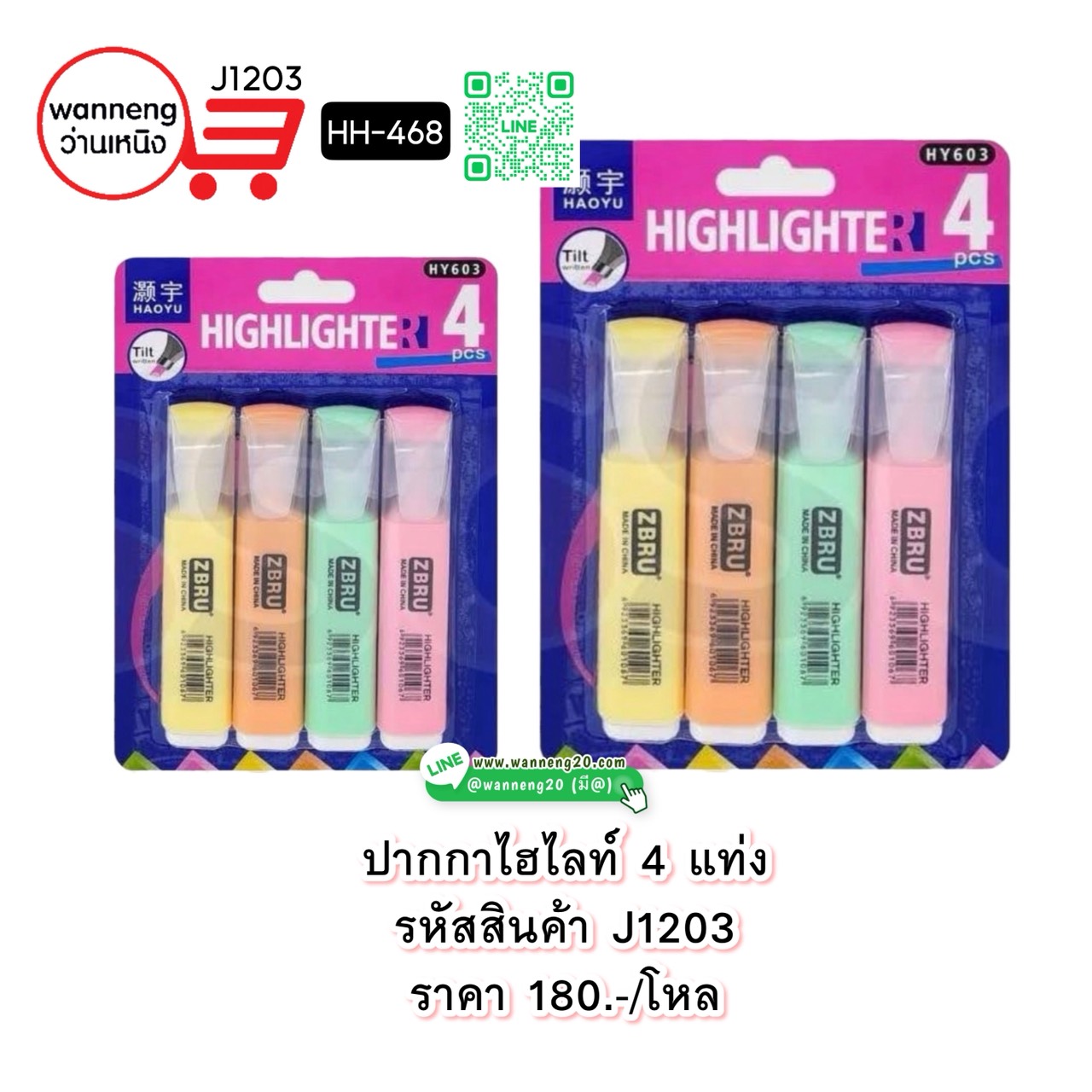 J1203 ปากกาไฮไลท์ 4 แท่ง HH-468 1 โหล