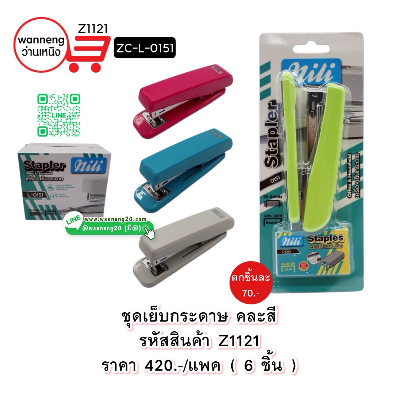 Z1121 ชุดเย็บกระดาษ คละสี ZC-L-0151 1 แพค 6 ชิ้น