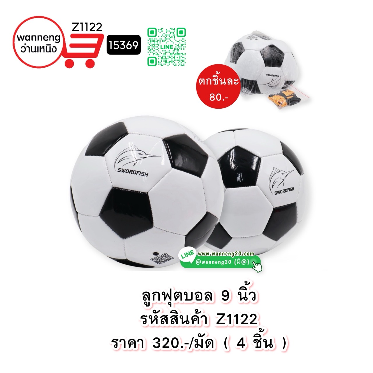 Z1122 ลูกฟุตบอล 9 นิ้ว 15369 1 มัด 4 ชิ้น