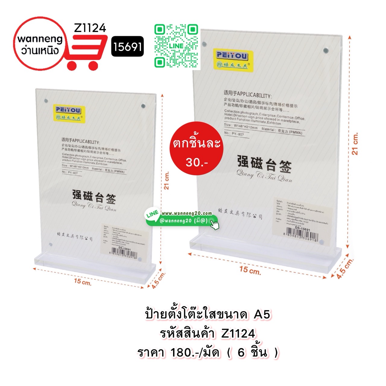 Z1124 ป้ายตั้งโต๊ะใสขนาด A5 15691 1 มัด 6 ชิ้น