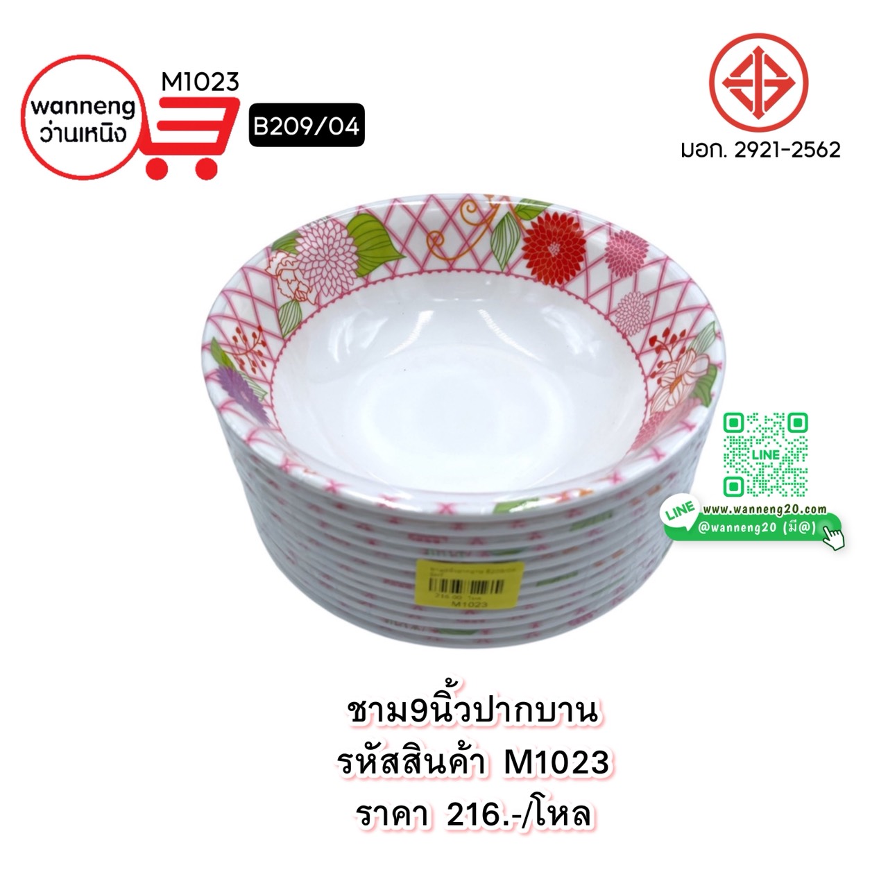 M1024 ชาม 9 นิ้ว ปากบาน B209/911 โหล
