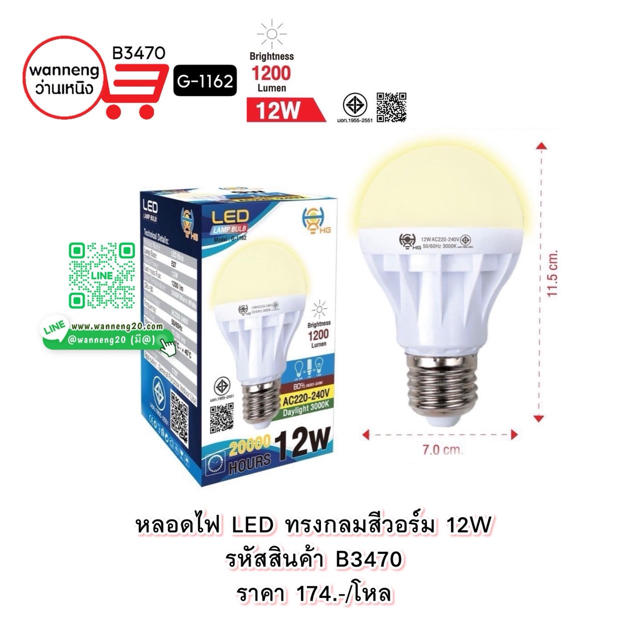 B3470 หลอดไฟ LED ทรงกลมสีวอร์ม 12W G-1162 1 โหล