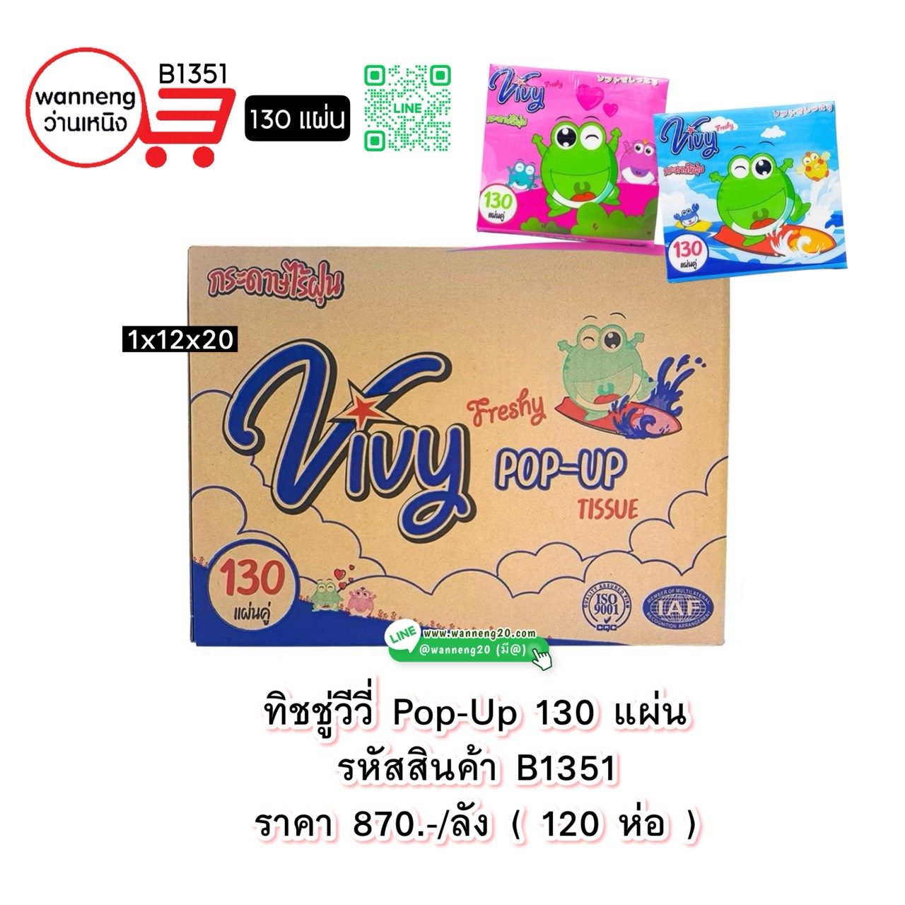 B1351 ทิชชู่วีวี่ Pop-Up 130 แผ่น 1x12x10 1 ลัง