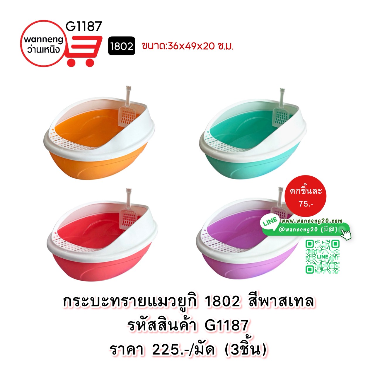G1187 กระบะทรายแมวยูกิ 1802 สีพาสเทล 1 มัด 3 ชิ้น