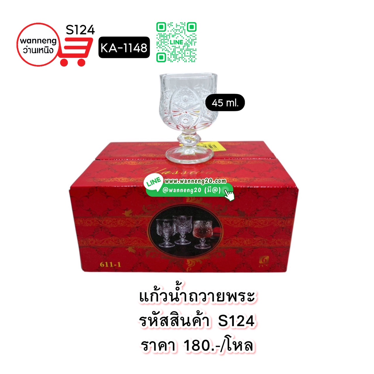 S124 แก้วน้ำถวายพระ 45ml. KA-1148 1 โหล