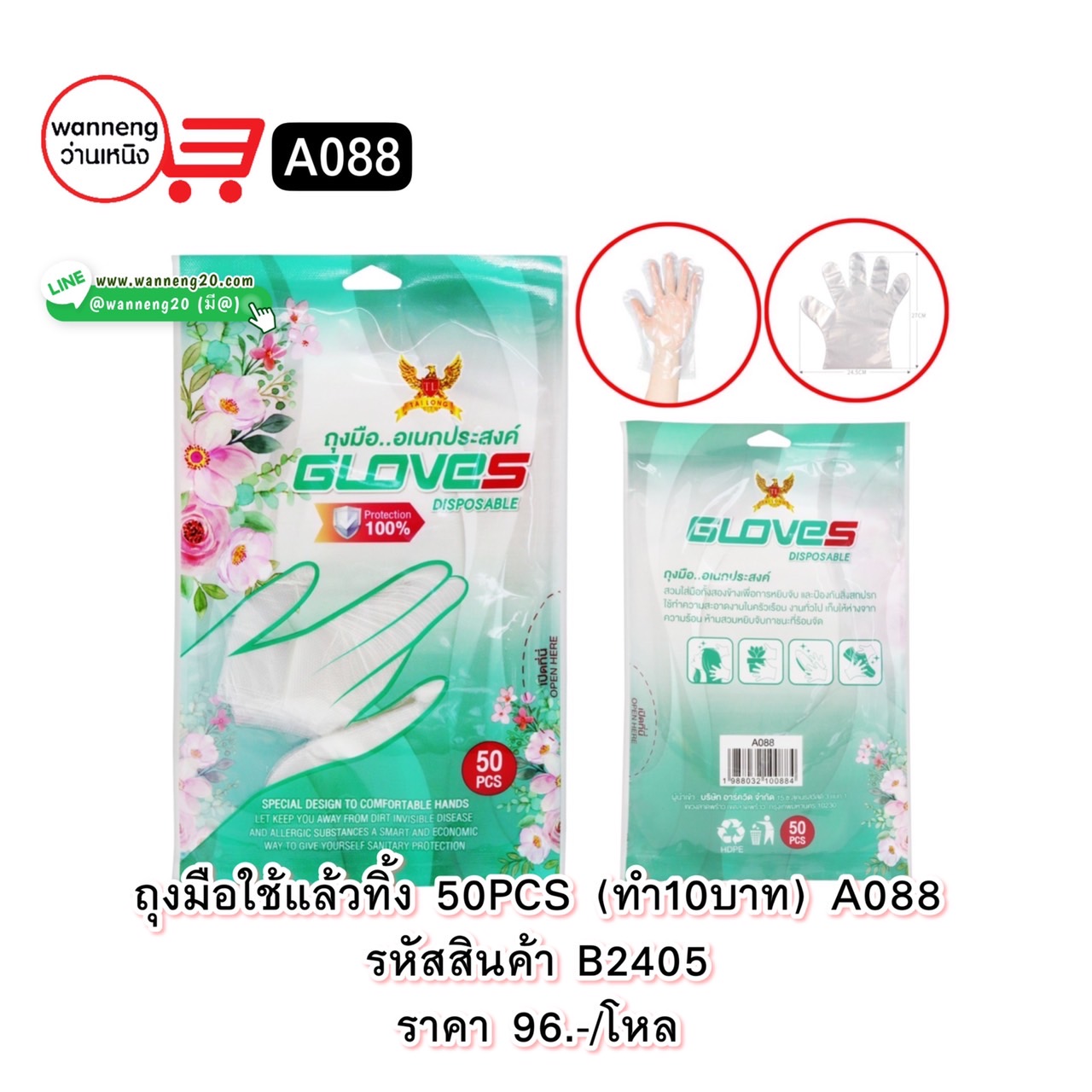 B2405 ถุงมือใช้แล้วทิ้ง 50PCS. (ทำ 10 บาท) A088 1 โหล