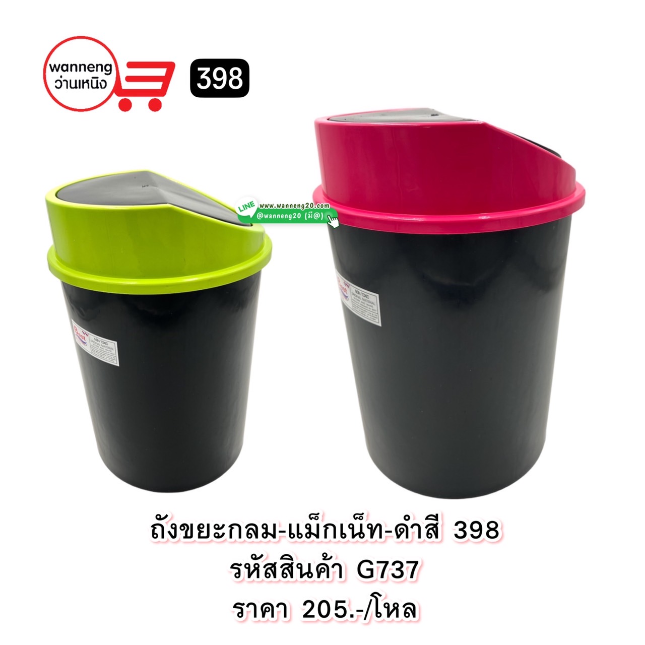 G737 ถังขยะกลม-แม็กเน็ท-ดำสี 398 1 โหล