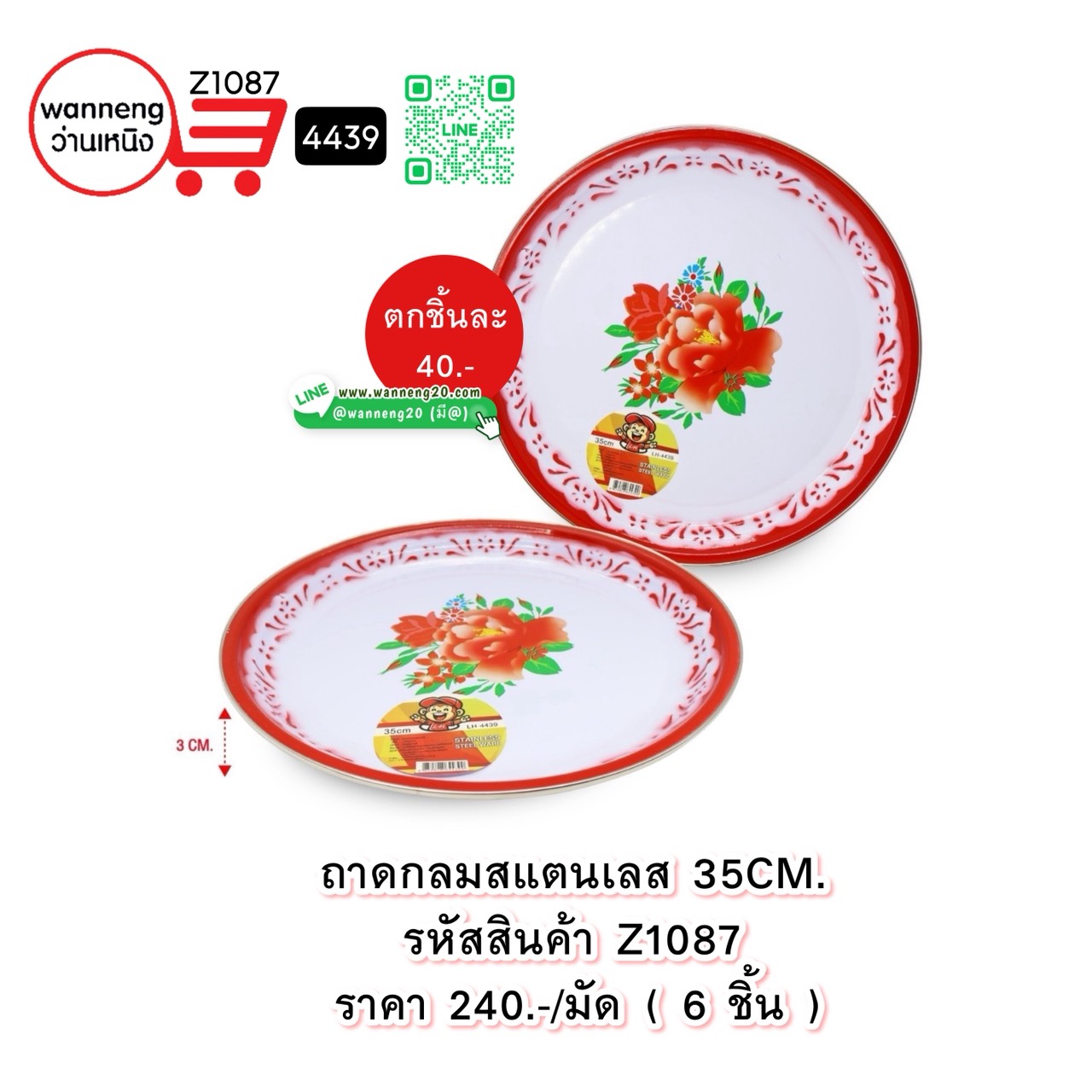 Z1087 ถาดกลมสแตนเลส 35 CM. 4439 1 มัด 6 ชิ้น