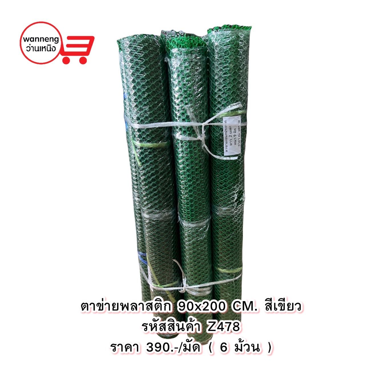 Z478 ตาข่ายพลาสติก 90x200 สีเขียว 1 มัด 6 ม้วน
