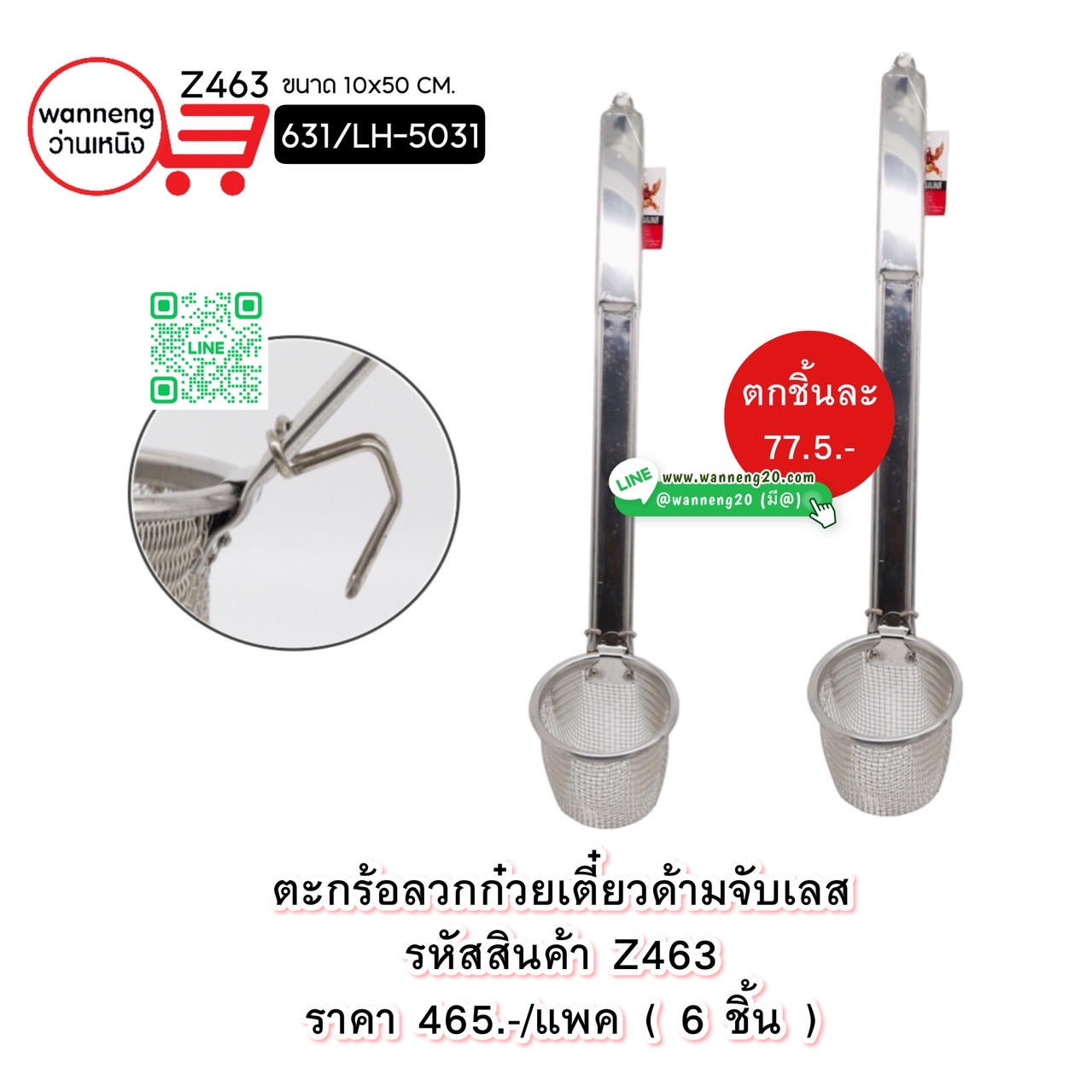 Z463 ตะกร้อลวกก๋วยเตี๋ยวด้ามจับเลส 631/5031 1แพค 6 ชิ้น