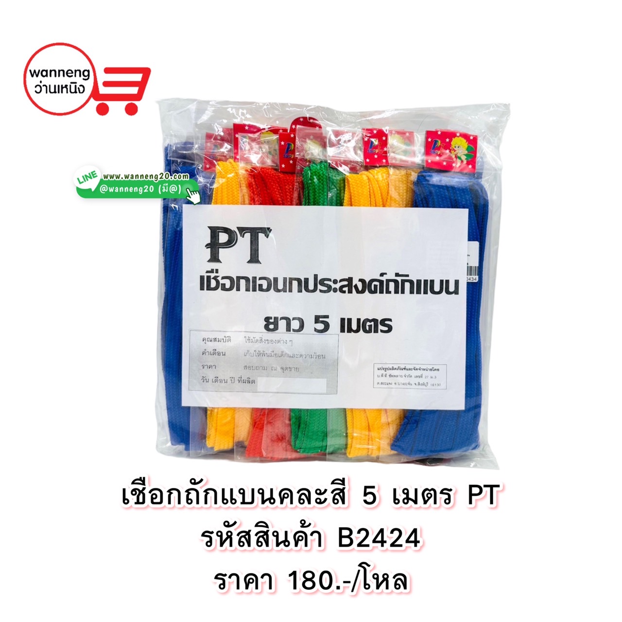 B2424 เชือกถักแบนคละสี 5 เมตร PT 1 โหล