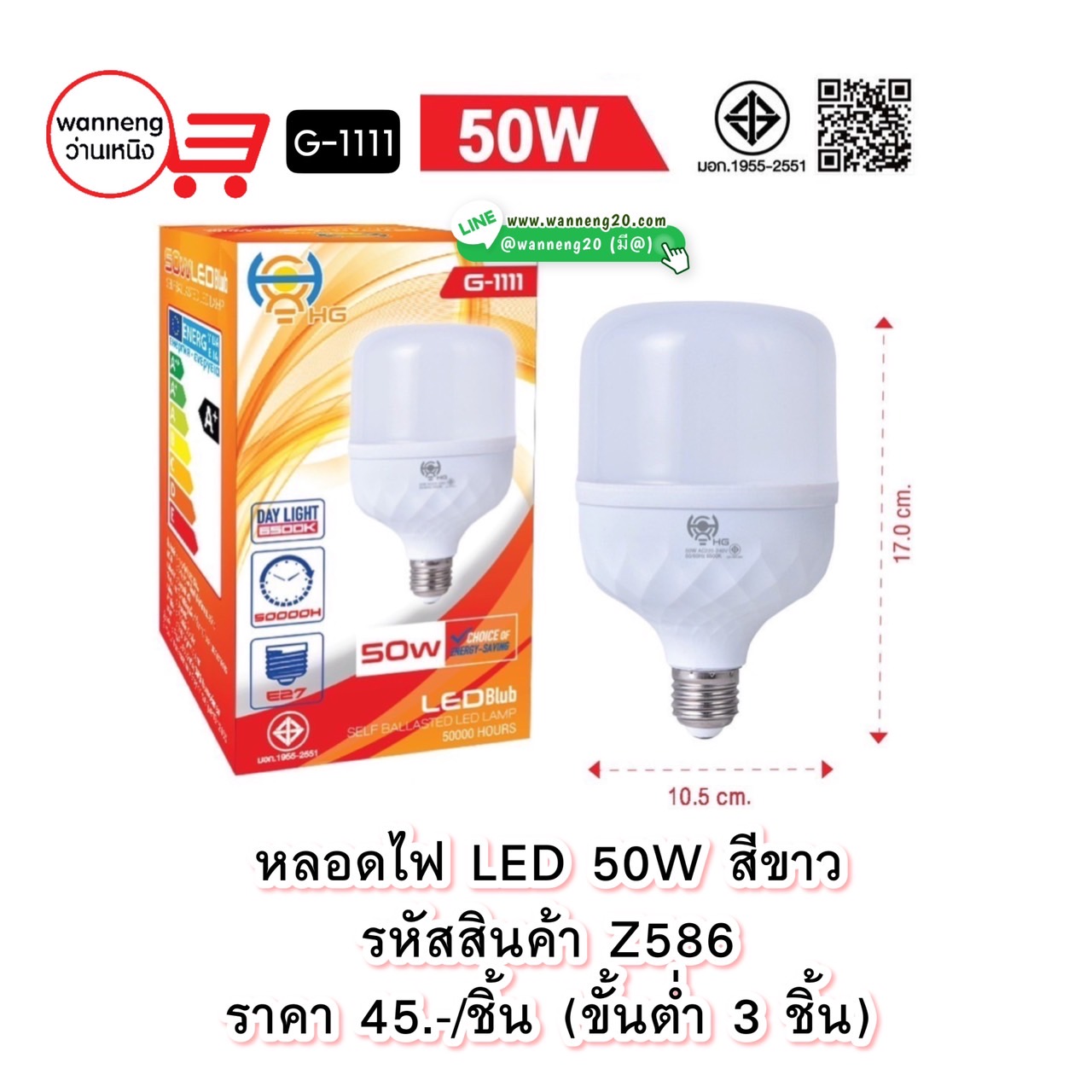 Z586 หลอดไฟ LED 50W สีขาว G-1111 ขั้นต่ำ 3 ชิ้น