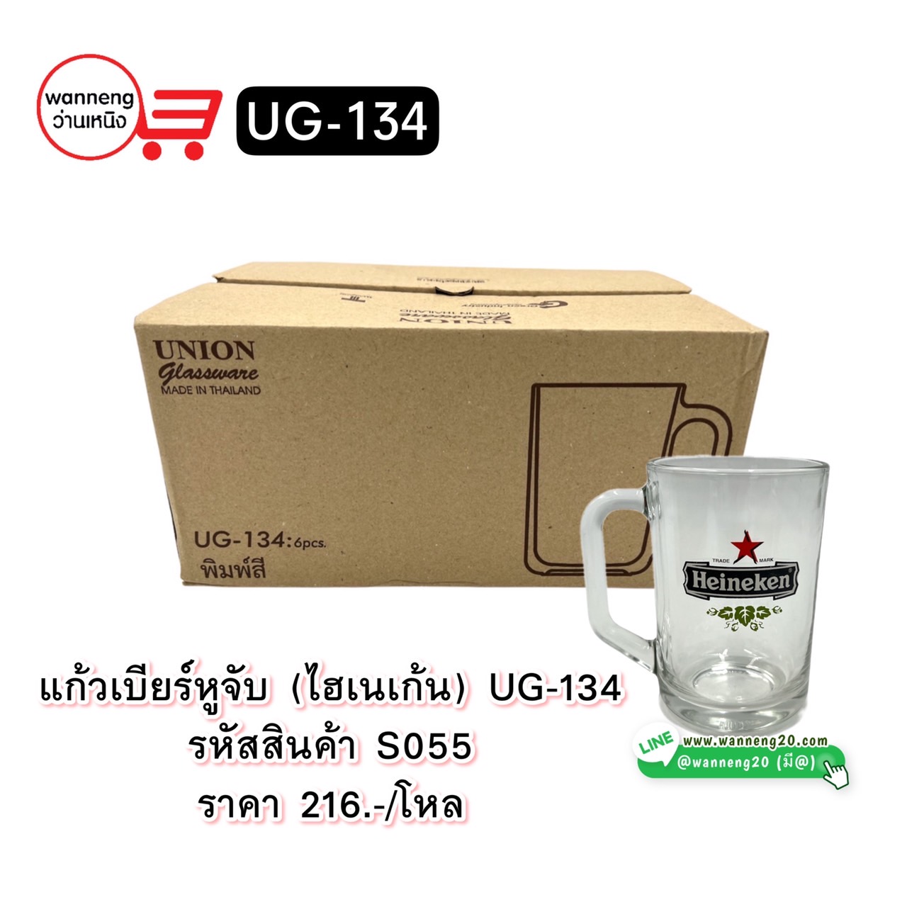 S055 แก้วเบียร์หูจับ (ไฮเนเก้น) UG-134 1 โหล