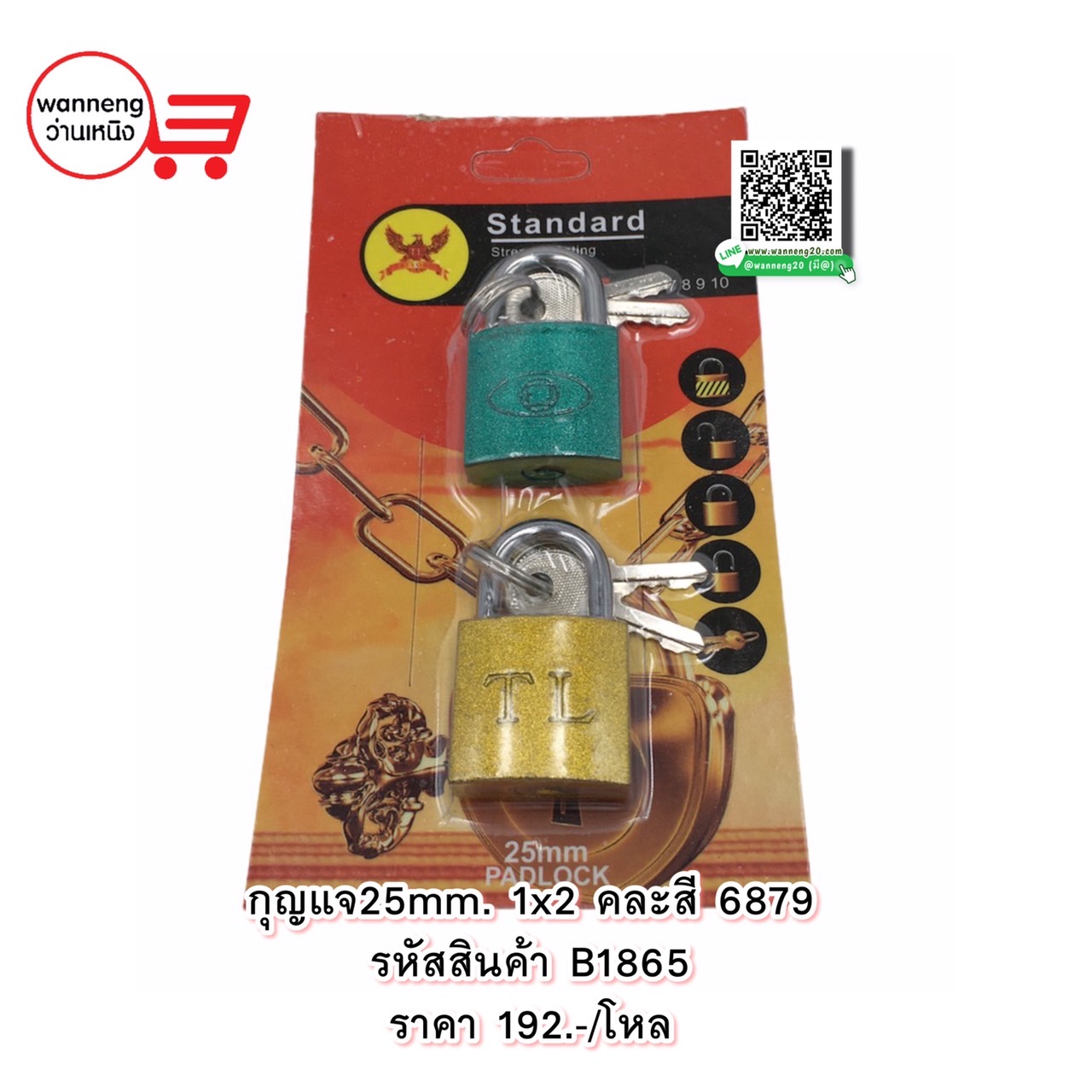 B1865 กุญแจ 25mm. 1x2 คละสี 6879 1 โหล