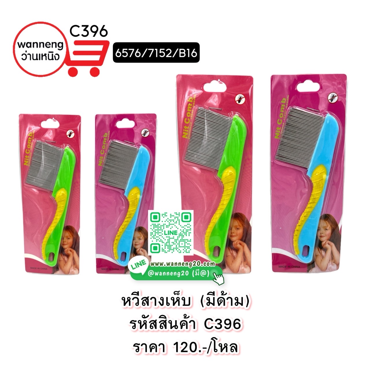 C396 หวีสางเห็บ (มีด้าม) 6576/7152 /B16 1 โหล