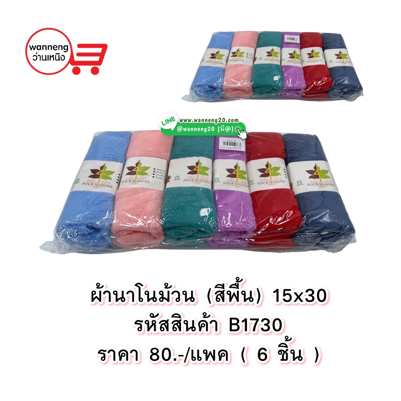 B1730 ผ้านาโน (สีพื้น) 15x30 1 แพค บรรจุ 6 ชิ้น