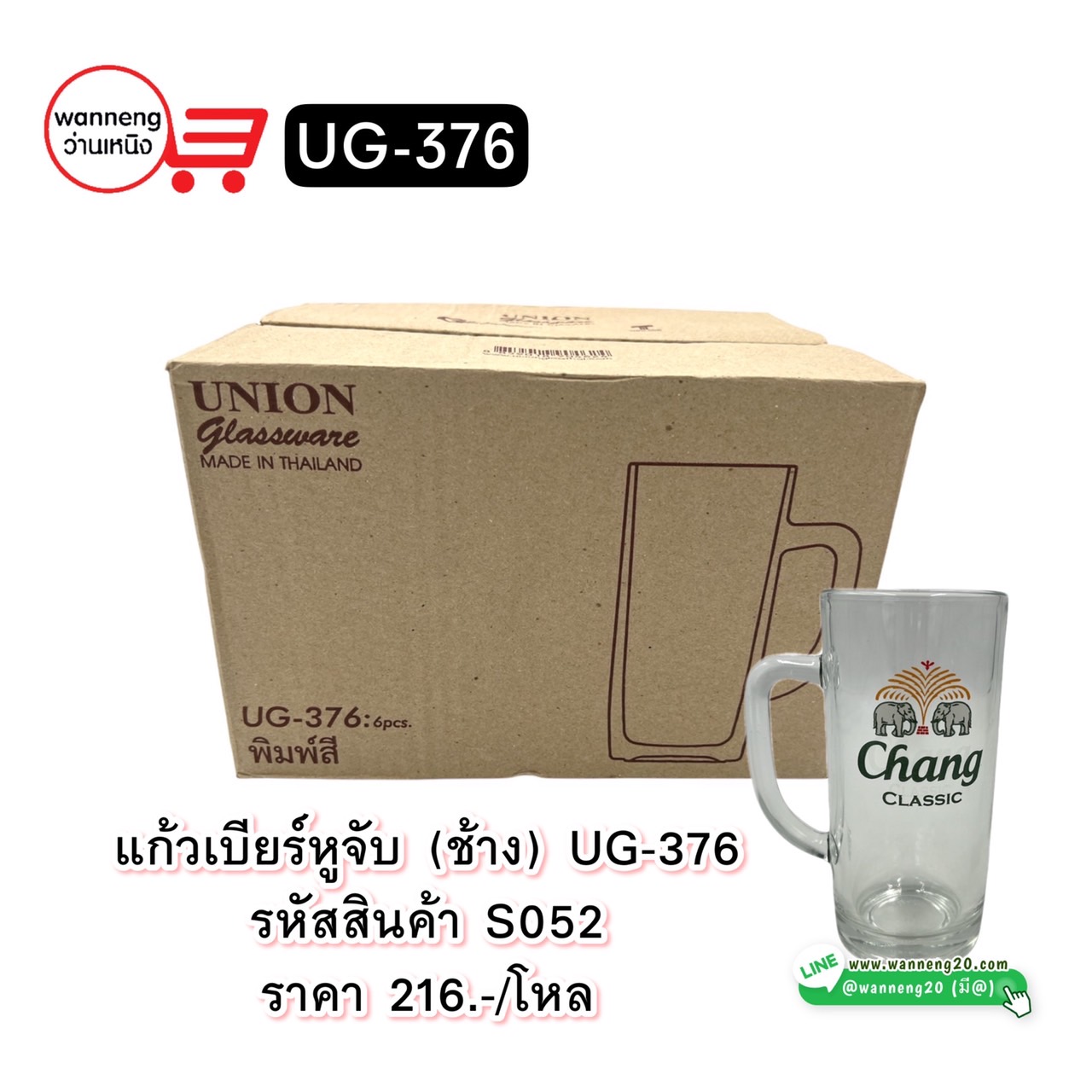 S052 แก้วเบียร์หูจับ (ช้าง) UG-376 1 กล่อง 6 ชิ้น