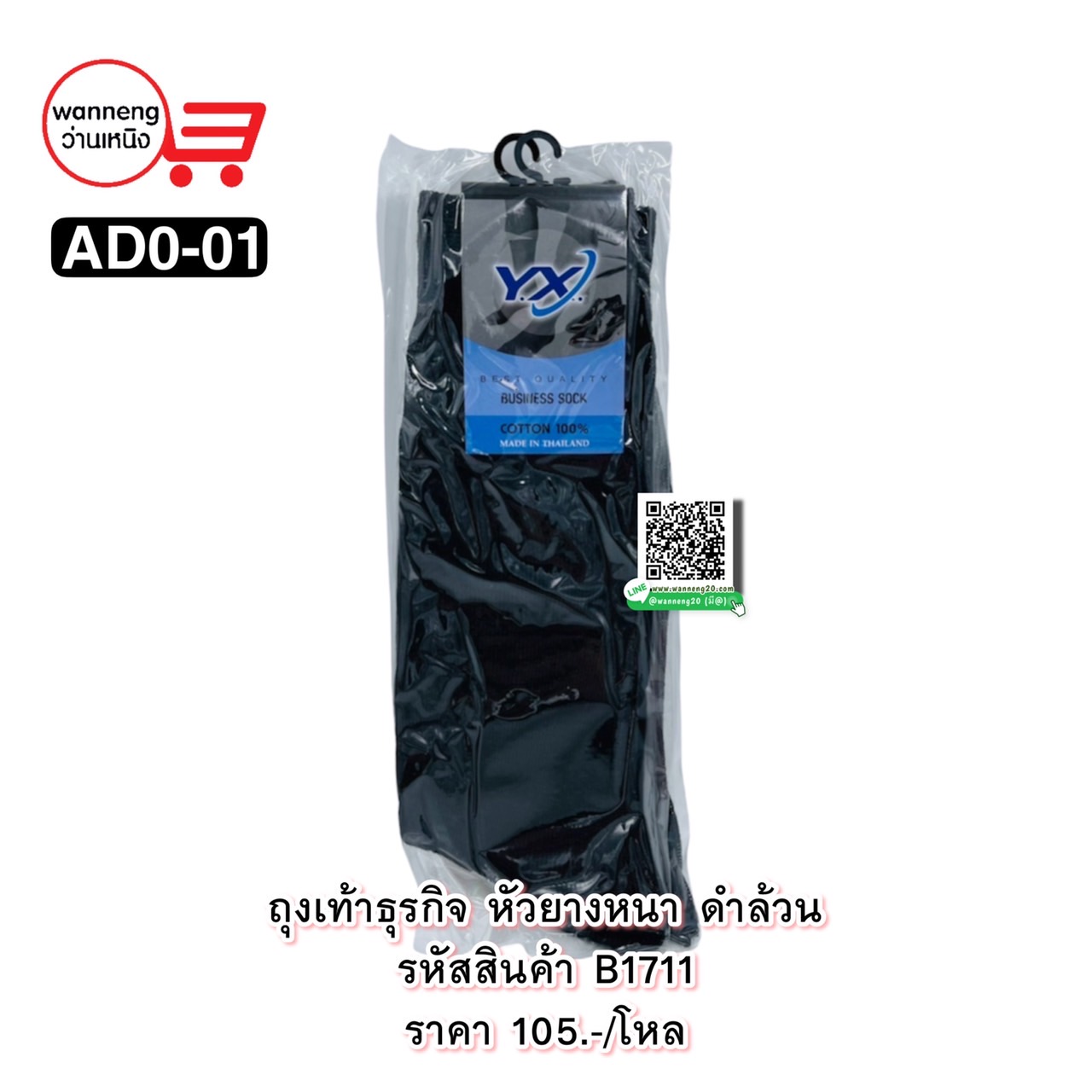 B1711 ถุงเท้าธุรกิจ หัวยางหนา ดำล้วน AD0-01 1 โหล