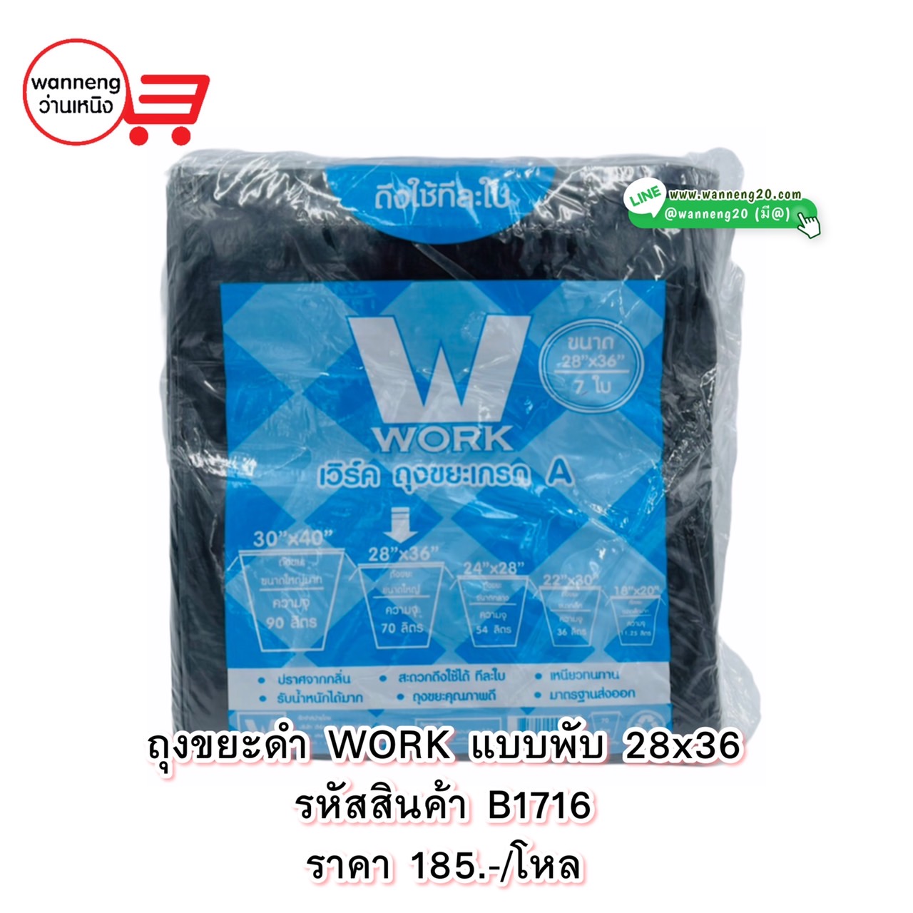 B1716 ถุงขยะดำ work แบบพับ 28x36 1 โหล