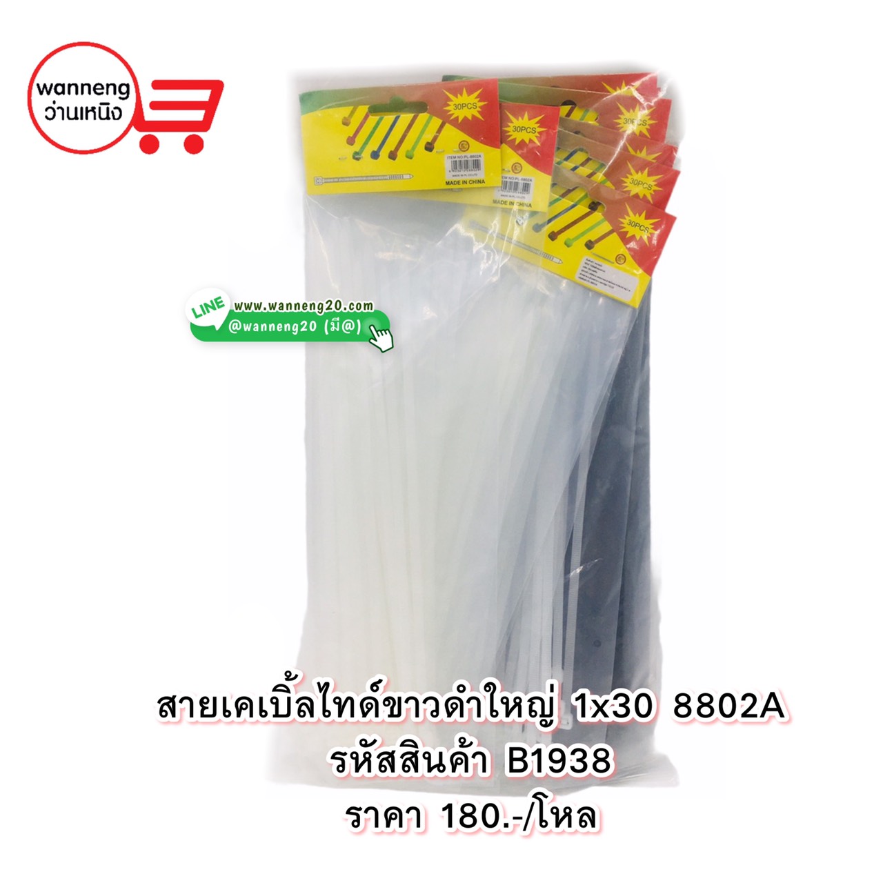 B1938 สายเคเบิ้ลไทด์ขาวดำใหญ่ 1x30 8802A 1 โหล