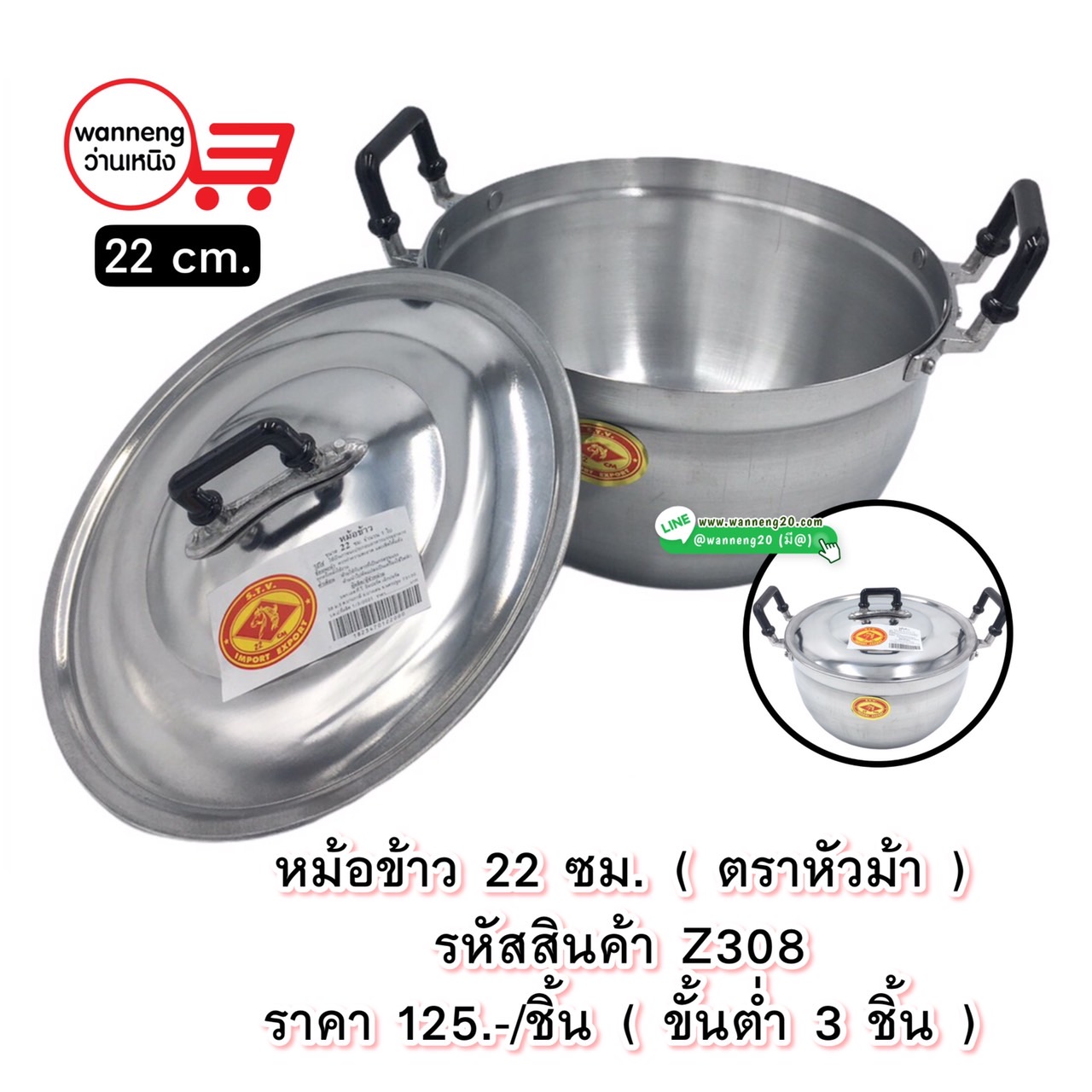 Z308 หม้อข้าว 22 ซม. (ตราหัวม้า) 1 ชิ้น (ขั้นต่ำ 3 ชิ้น)