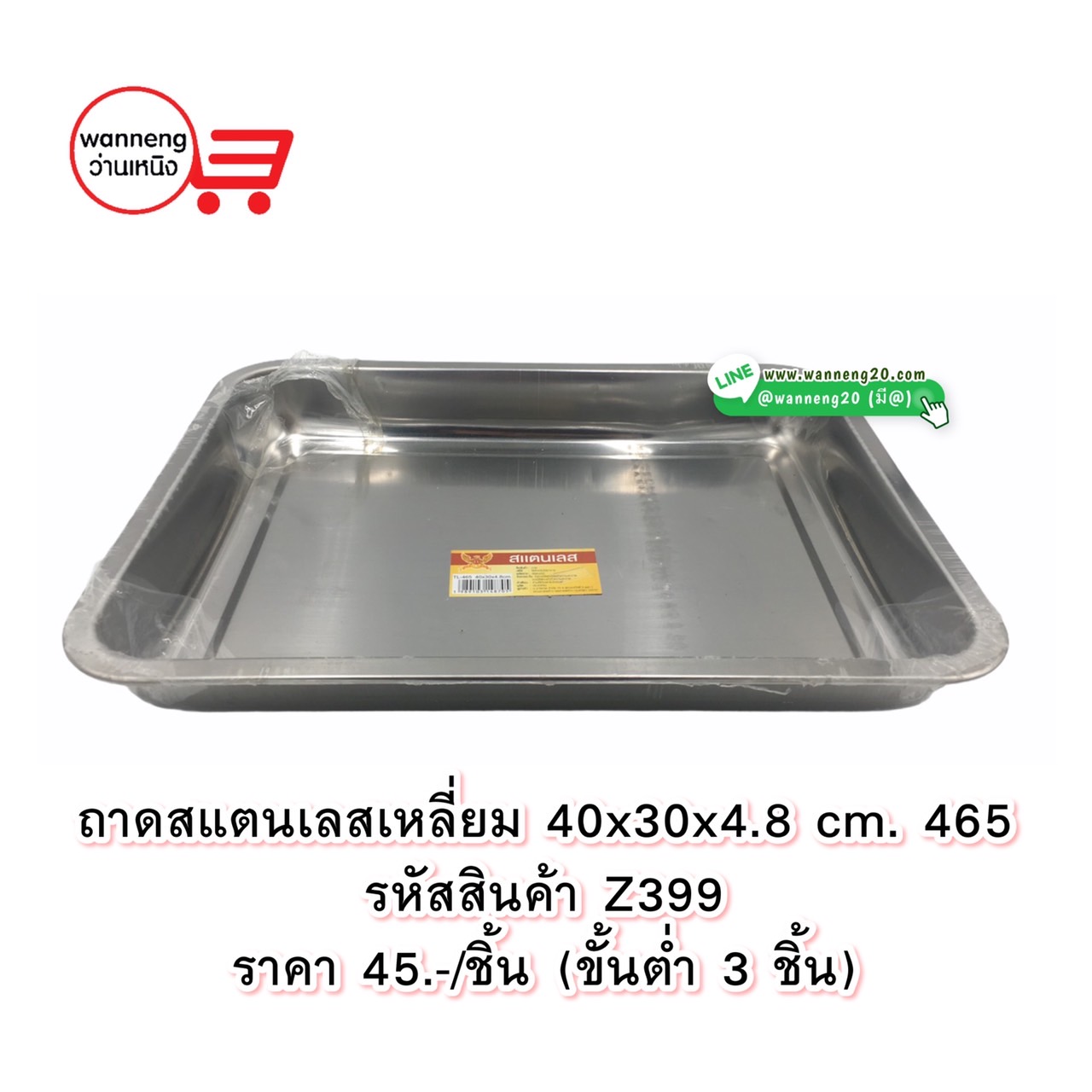 Z399 ถาดสแตนเลสเหลี่ยม 40x30x4.8cm. 465