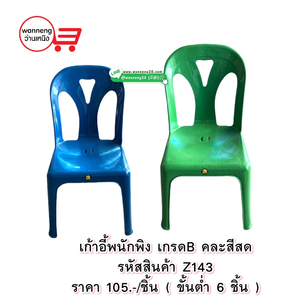 Z143 เก้าอี้พนักพิง เกรดB คละสีสด 1 มัด 6 ชิ้น