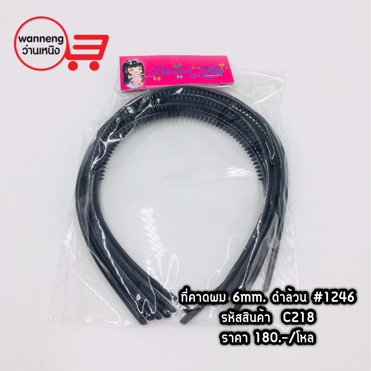 C218 ที่คาดผม 6mm. 1x6 ดำล้วน #1246 1 โหล