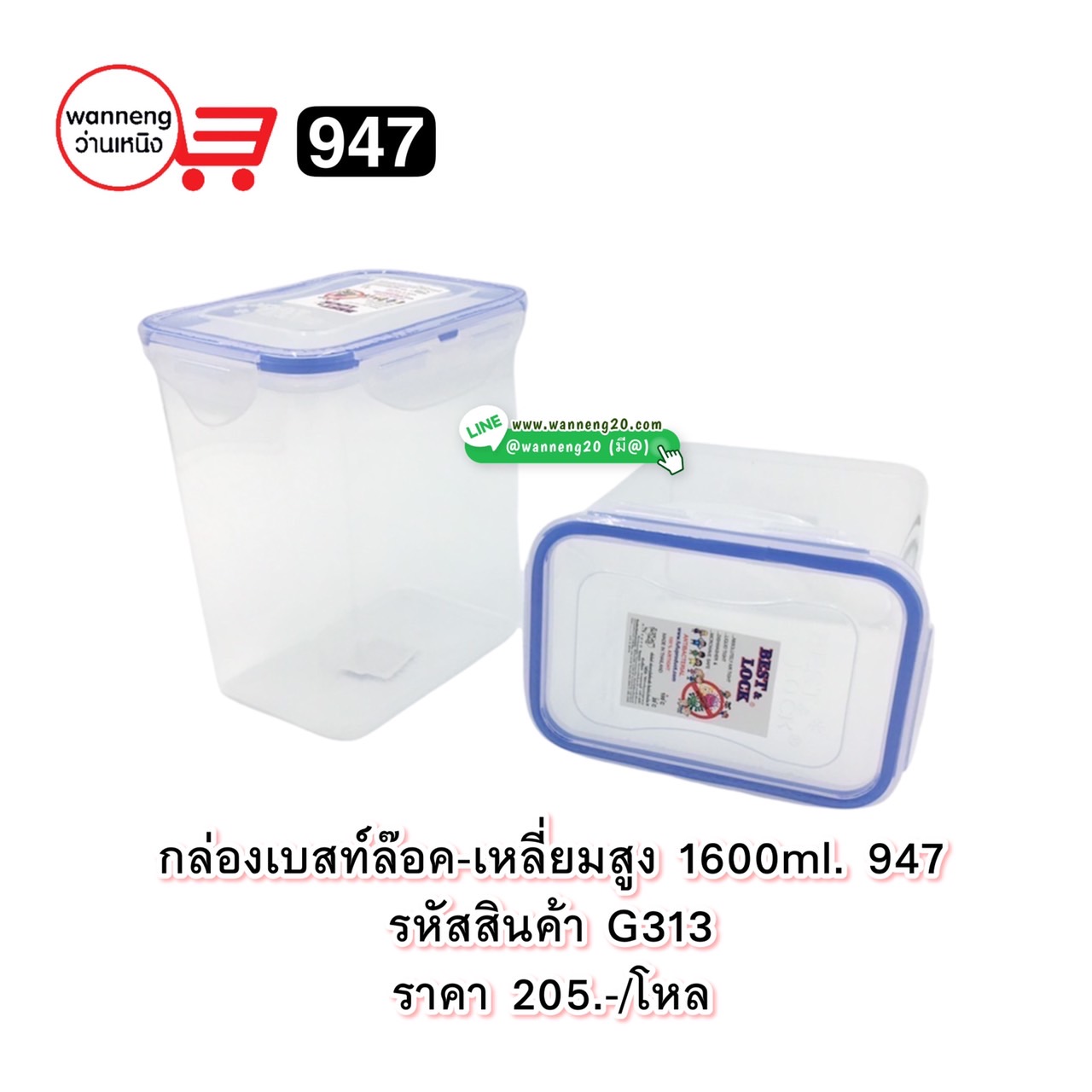G313 กล่องเบสท์ล็อค-เหลี่ยมสูง 1600ml. 947 1 โหล