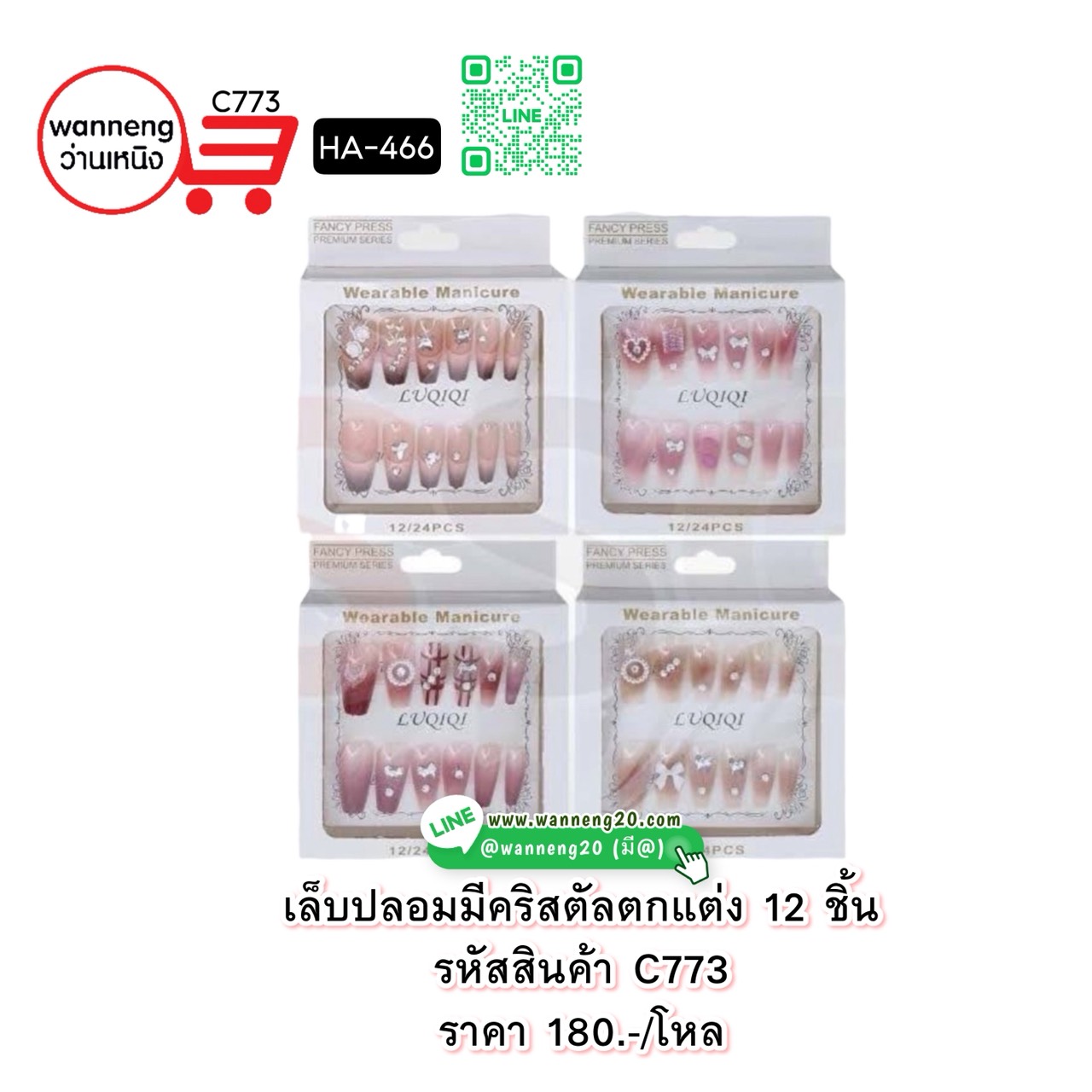 C773 เล็บปลอมมีคริสตัลตกแต่ง 12 ชิ้น HA-466 1 โหล