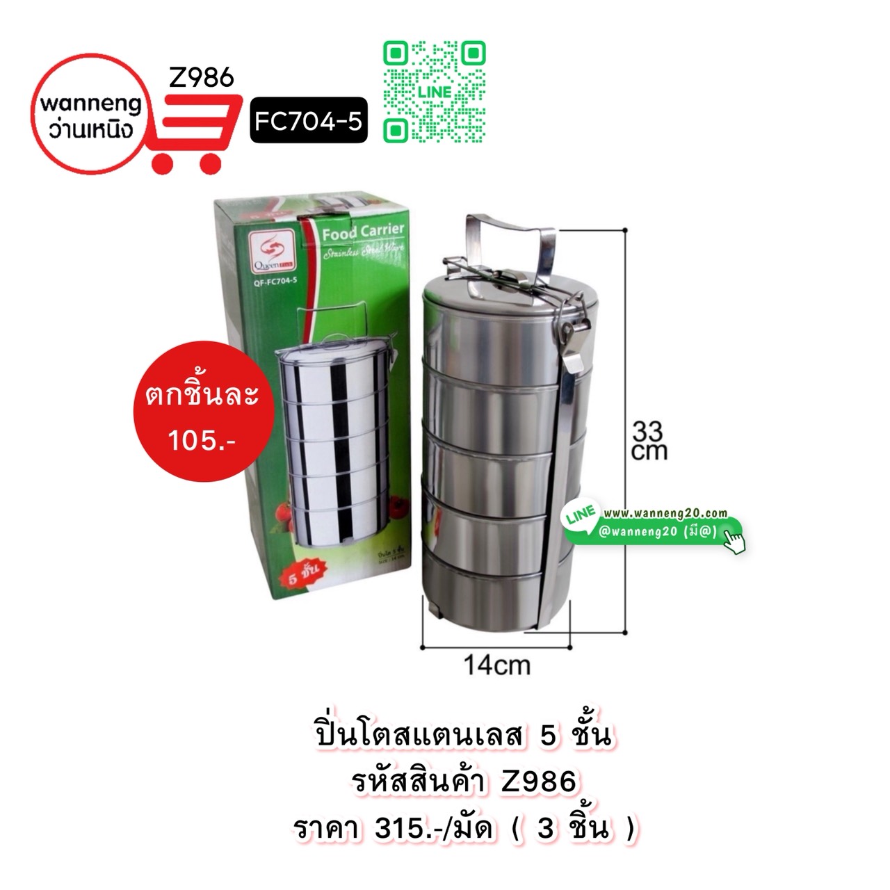 Z986 ปิ่นโตสแตนเลส 5 ชั้น FC704-5 1 มัด 3 ชิ้น