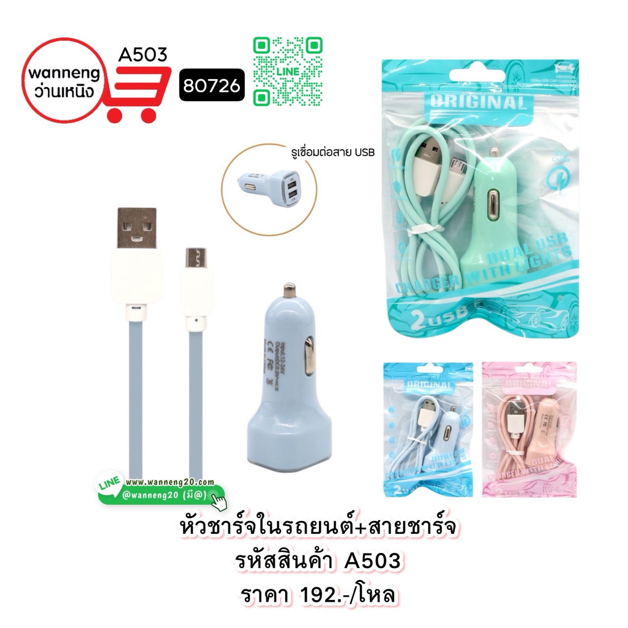 A503 หัวชาร์จในรถยนต์+สายชาร์จ 80726 1 โหล