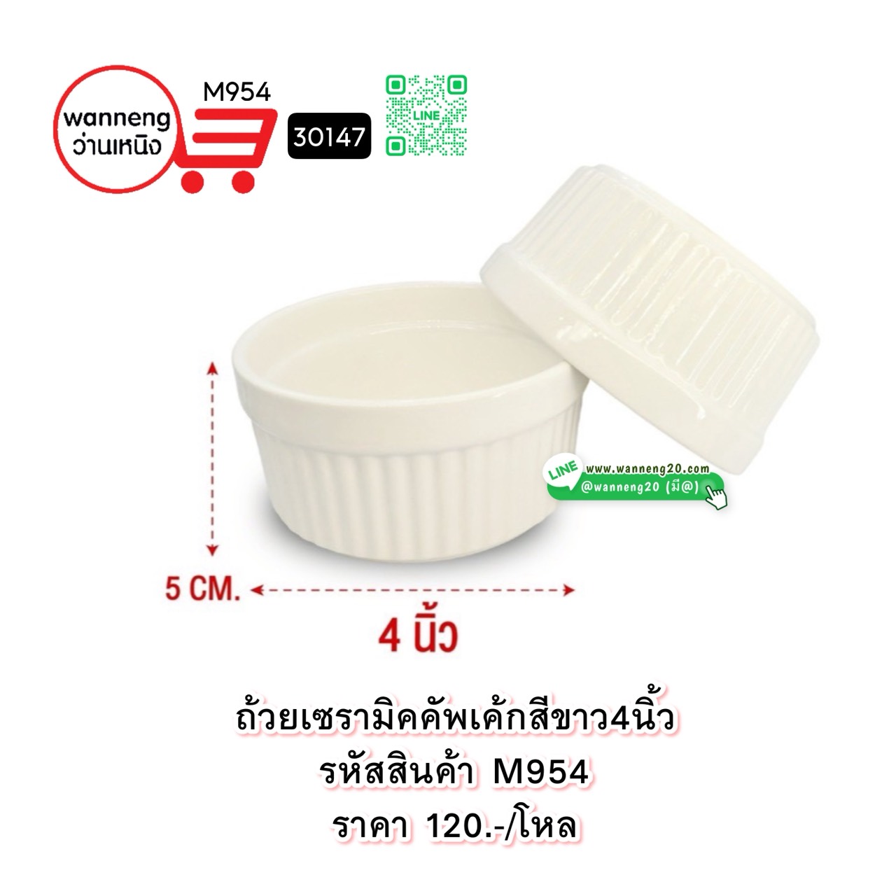 M954 ถ้วยเซรามิคคัพเค้กสีขาว 4 นิ้ว 30147 1 โหล