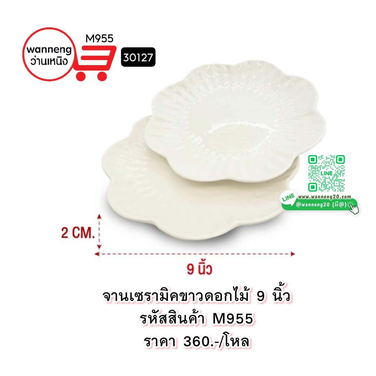 M955 จานเซรามิคขาวดอกไม้ 9 นิ้ว 30127 1 โหล