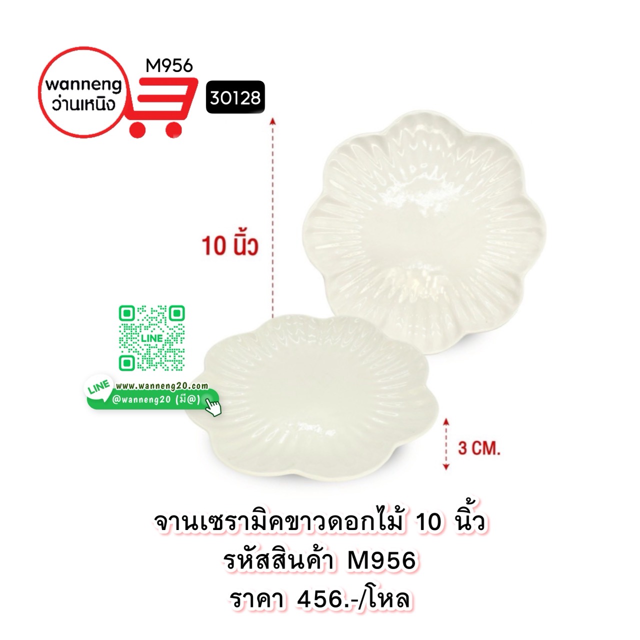 M956 จานเซรามิคขาวดอกไม้ 10 นิ้ว 30128 1 โหล