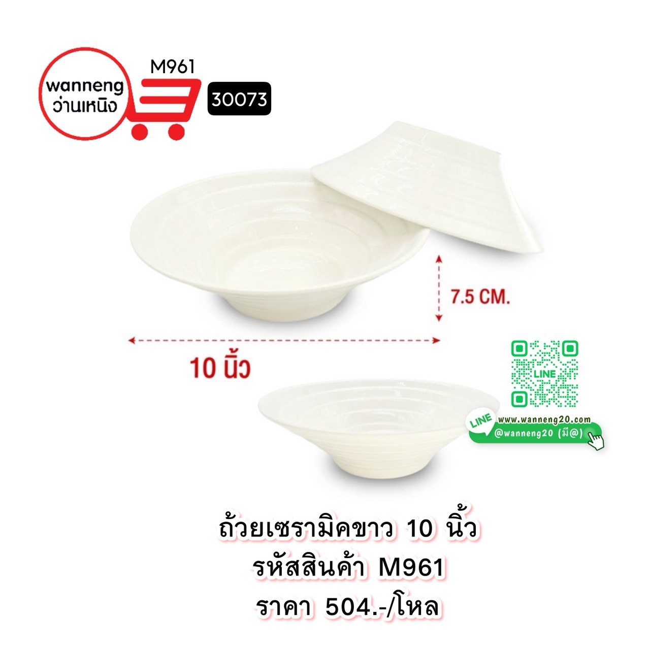 M961 ถ้วยเซรามิคขาว 10 นิ้ว 30073 1 โหล