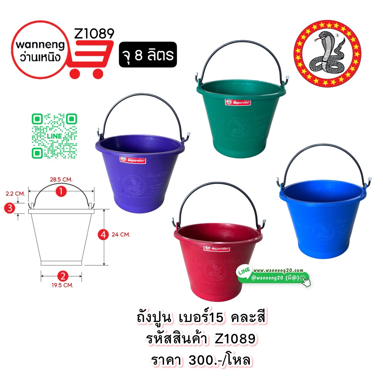 Z1089 ถังปูน เบอร์15 คละสี (ตรางู) 1 โหล