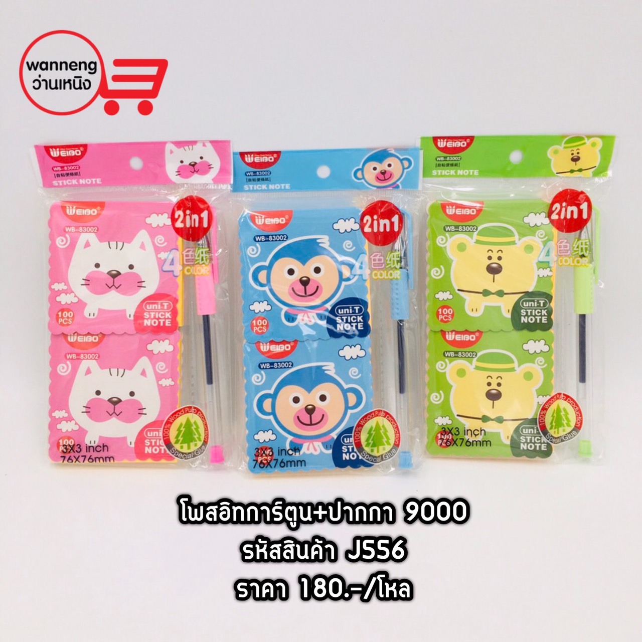 J556 โพสอิทการ์ตูน+ปากกา 9000 1 โหล