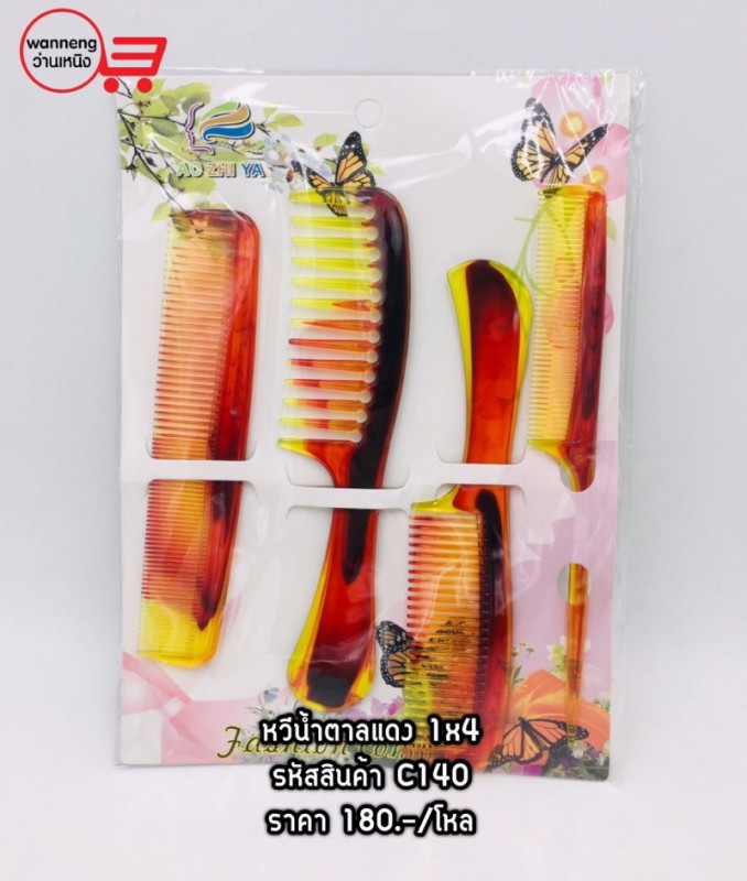 C140 หวีน้ำตาลแดง1x4 1 โหล