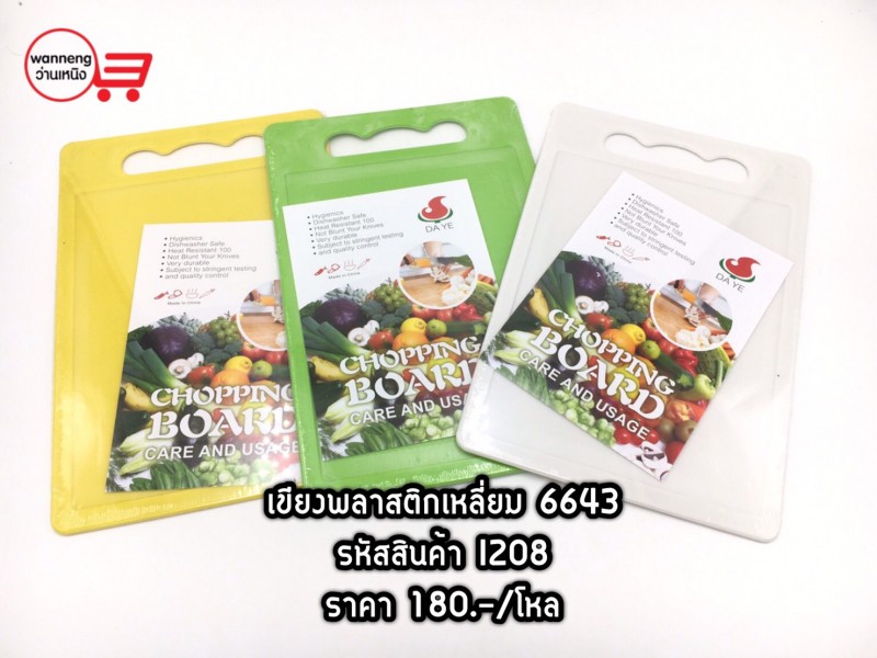 I208 เขียงพลาสติกเหลี่ยม 6643 1 โหล