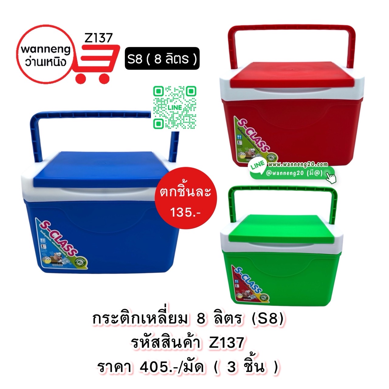 Z137 กระติกเหลี่ยม 8 ลิตร S8 1 มัด 3 ชิ้น