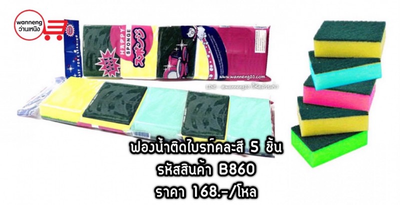 B860 ฟองน้ำติดไบร์ทคละสี 5 ชิ้น 1 โหล