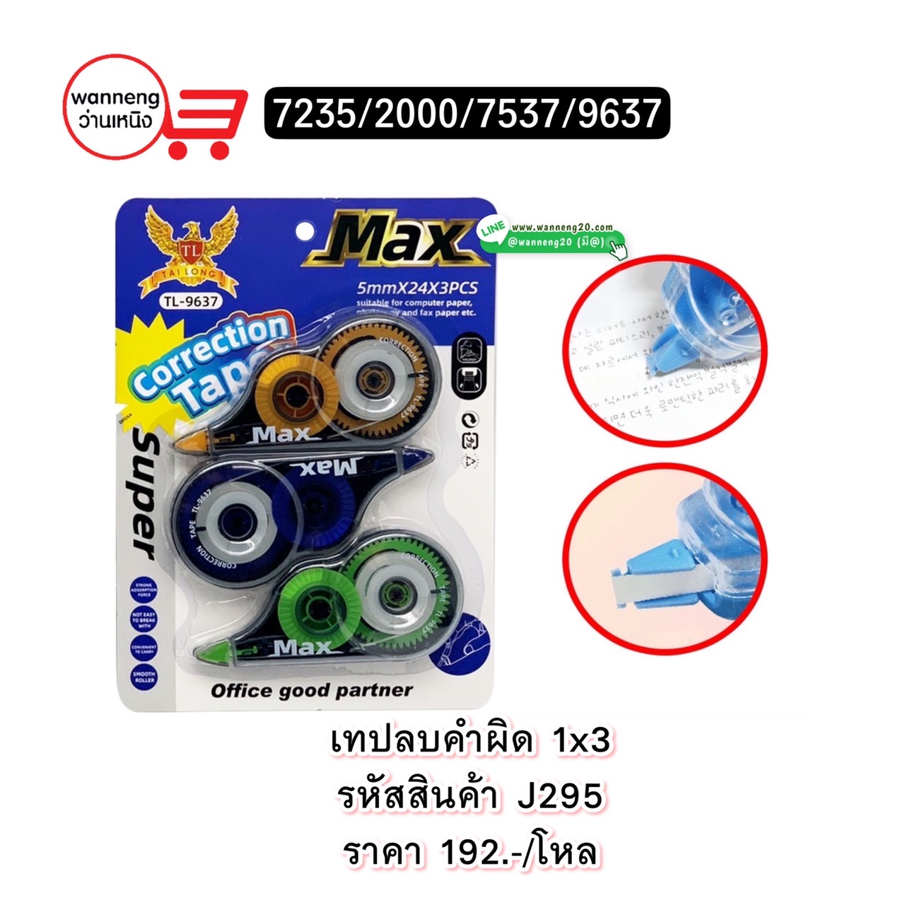 J295 เทปลบคำผิด 1x3 7235/2000/7537/9637 1 โหล