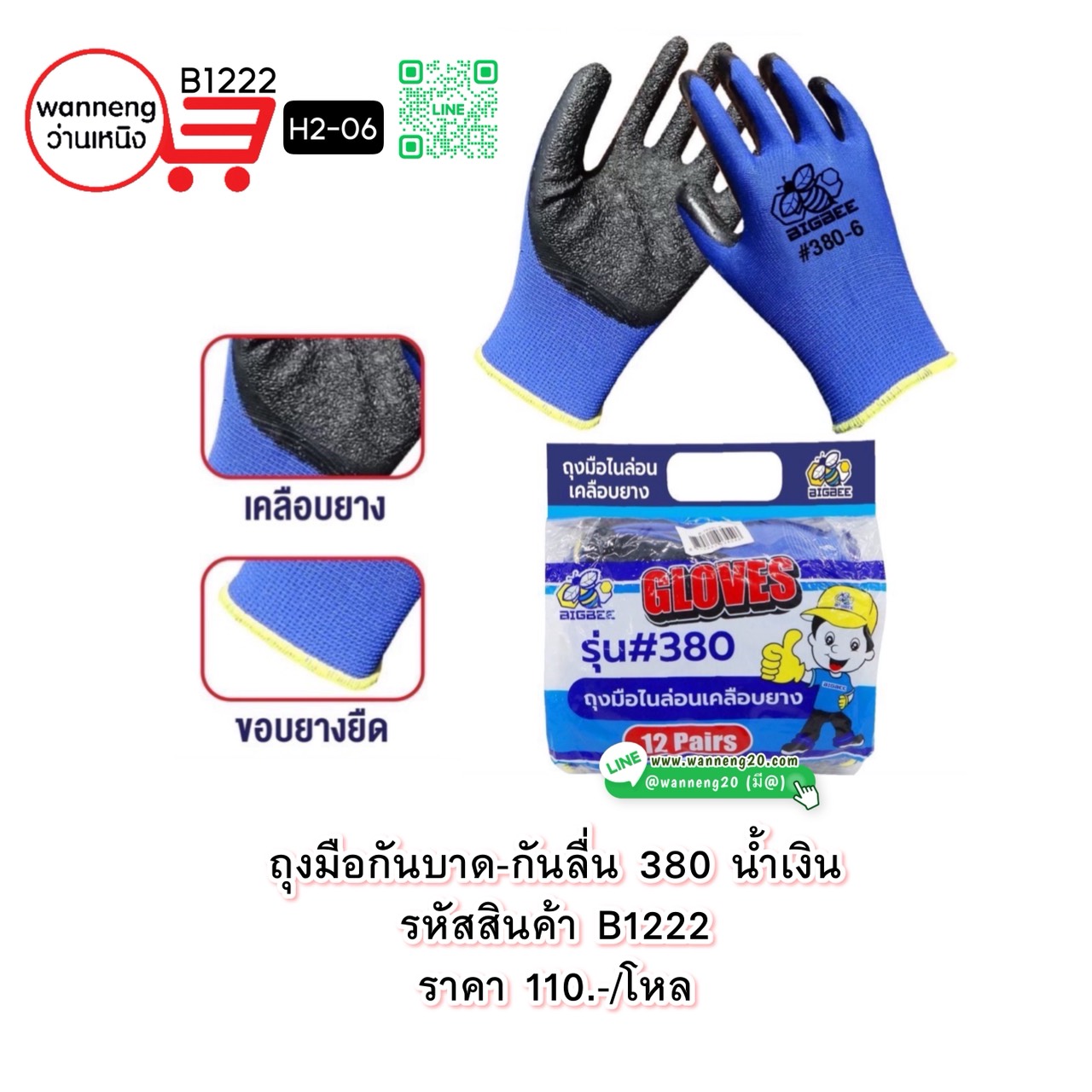 B1222 ถุงมือกันบาด-กันลื่น380-น้ำเงิน H2-06 1 โหล
