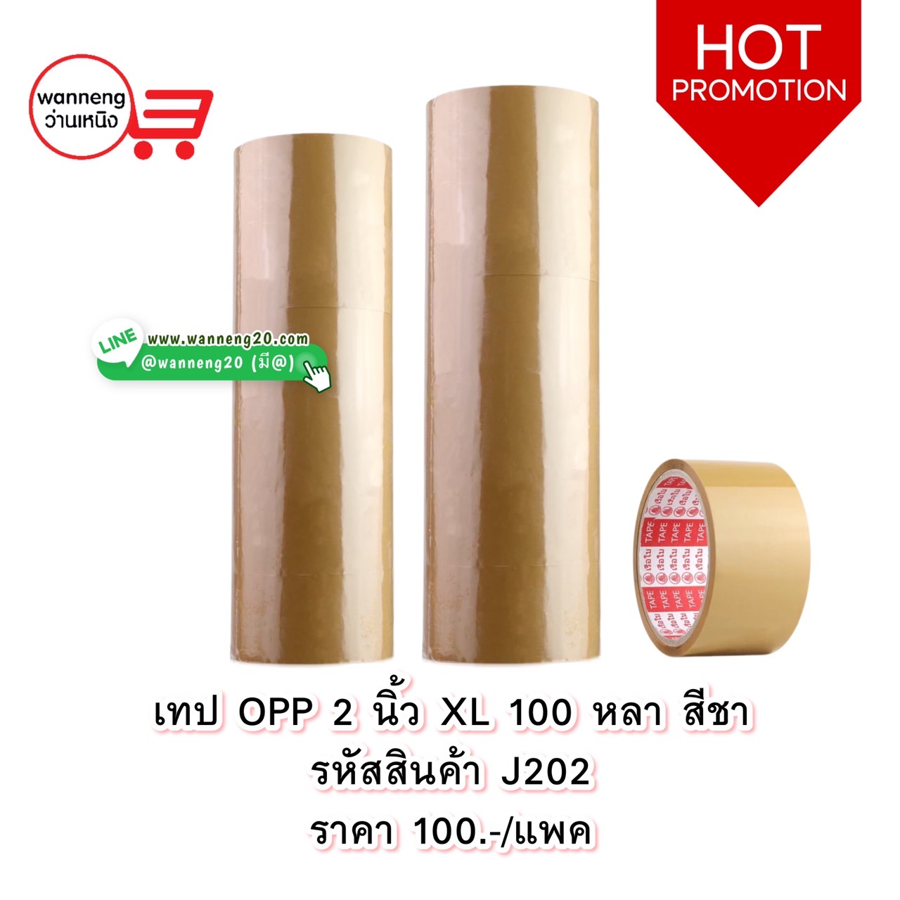 J202 เทปOPP 2 นิ้วxL100หลา สีชา (1x6) 1 แพค